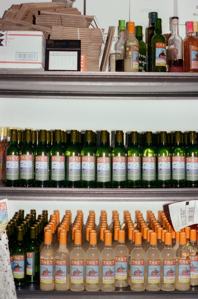 Chris Crawford is the founder of TART Vinegar, which she started as a small-batch raw vinegar project right before the pandemic in late 2019. Based in Brooklyn’s Navy Yard, TART’s become a bit of a food industry darling/obsession, with new batches selling out immediately. Chris is originally from the Pacific Northwest and made her way to Santa Barbara to work as a produce buyer at Trader Joe’s before ending up in the Bay Area restaurant scene (during the crazy aughts), where she learned to cook at places like Serpentine, Mission Chinese, and Chez Panisse. She later moved to Kenya to work in food innovation for a coffee exporter and finally ended up in New York, cooking for filmmakers, artists, and writers. For our discussion, we sent her a bottle of Monument Wine Company’s Smithereens 2021 because it had a similar florality to what we’d tasted in her Lavender Vinegar, and because the winemaker, Tyler, had Chris’ reverse trajectory, moving from New York to Oregon. She said the wine “doesn’t take showers and for sure lives in SE Portland and dropped out of Reed College.” She lives in Brooklyn with her 10-year-old son, Cecil Ranieri, who also took these photos.
